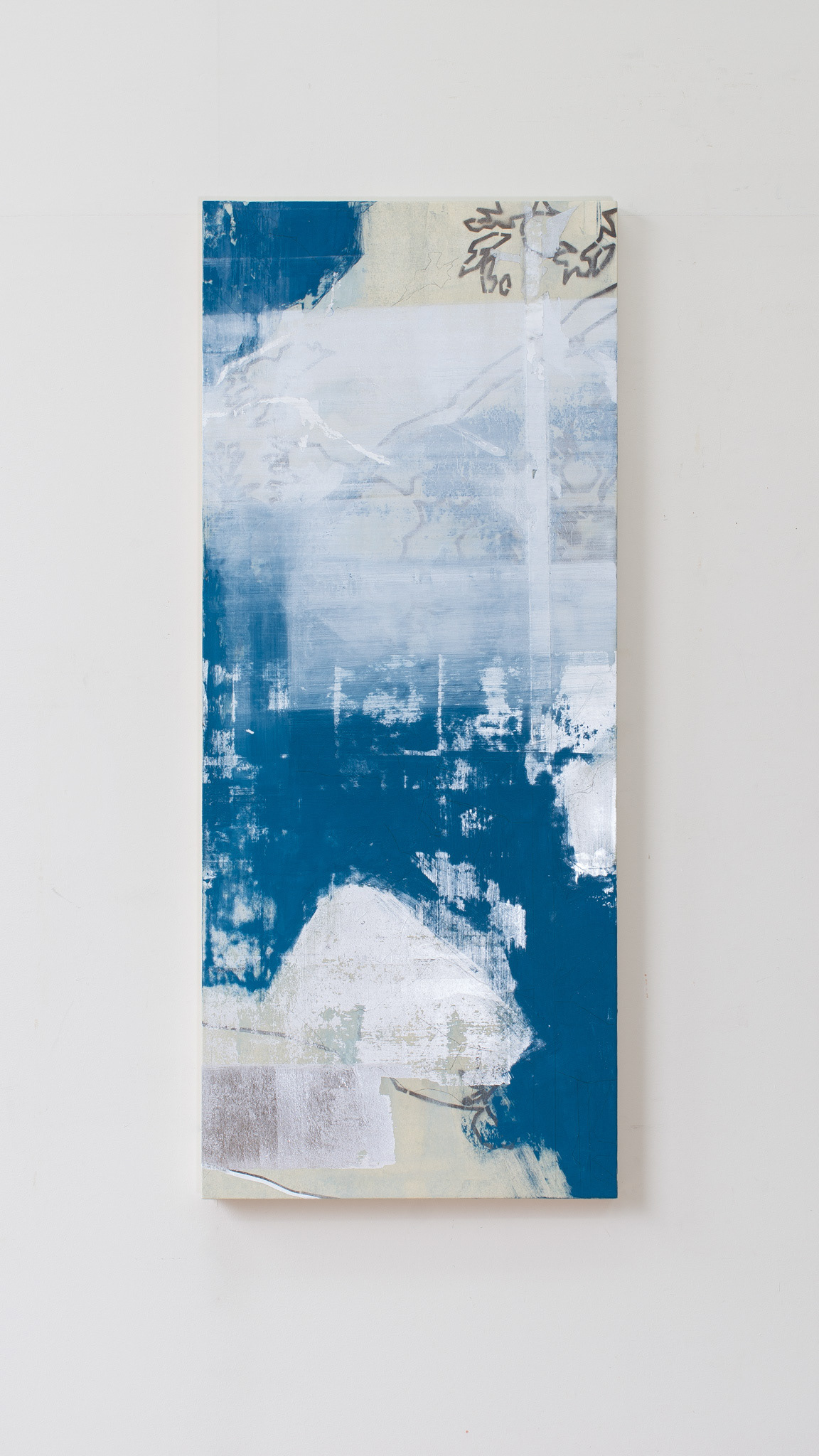 Going to see cherry blossoms. 120cm x 50cm 2019 pigment, acrylic spray paint, silver leaf, aluminum leaf, animal glue, japanese paper. 岩絵具、アクリルスプレー、銀箔、アルミ箔、膠、和紙