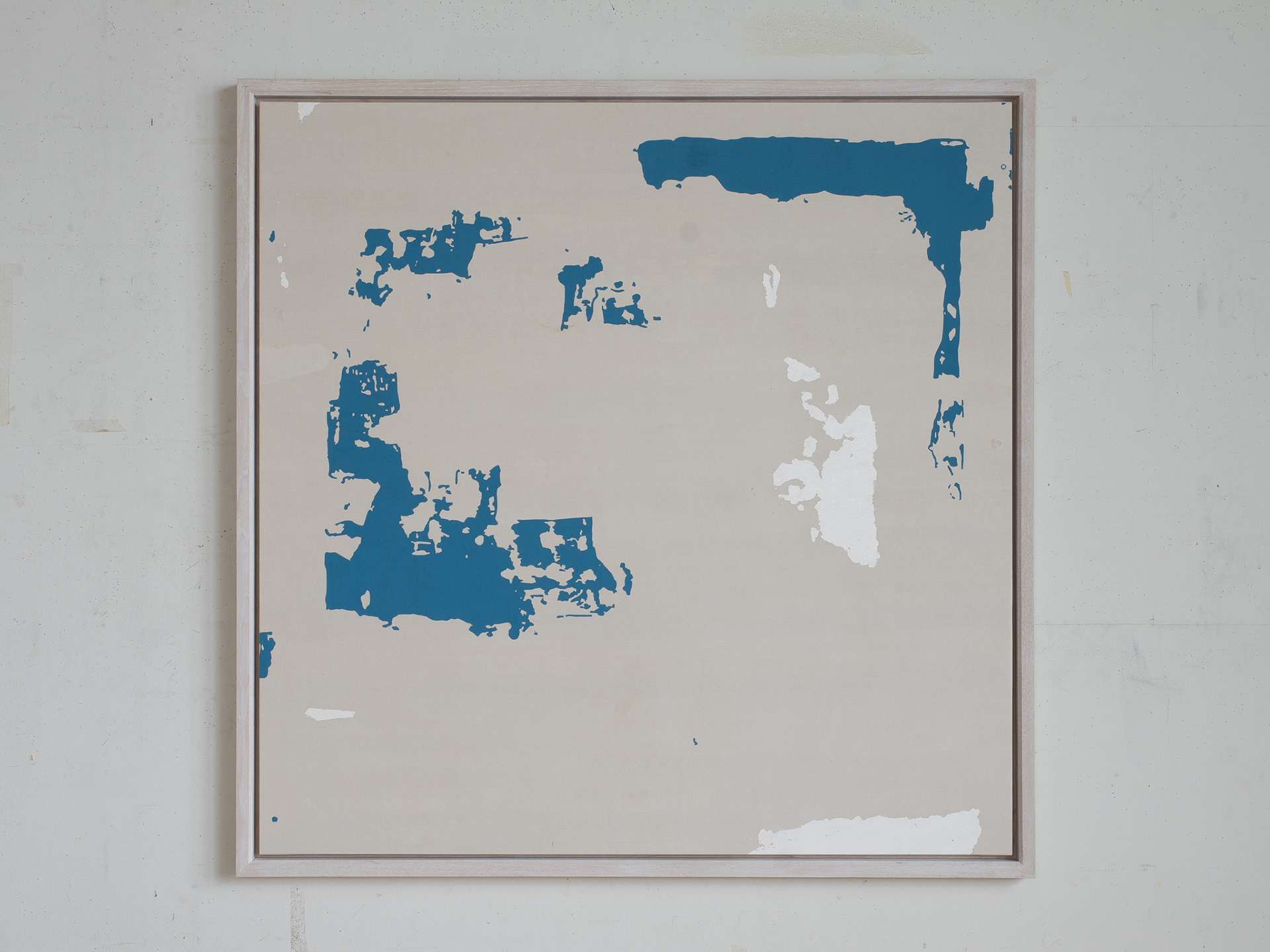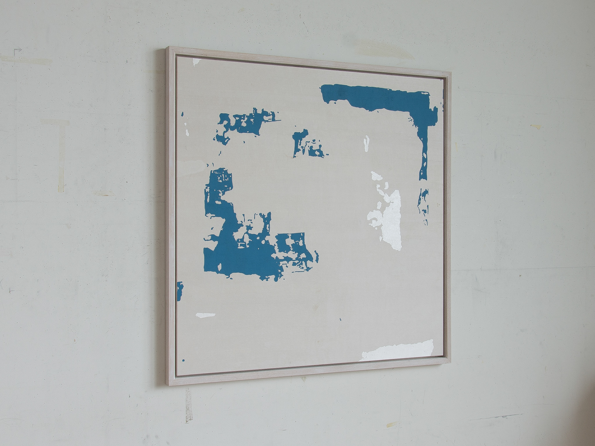 91 cm x 91 cm 2020 mineral pigment, animal glue, acrylic paint, silver leaf, japanese paper. 岩絵具、膠、アクリル絵具、銀箔、和紙