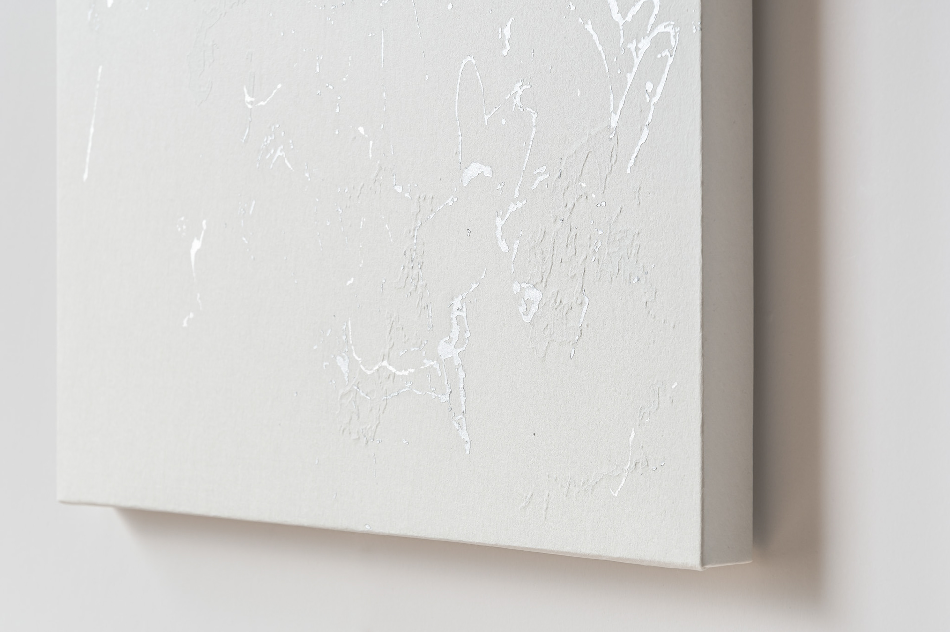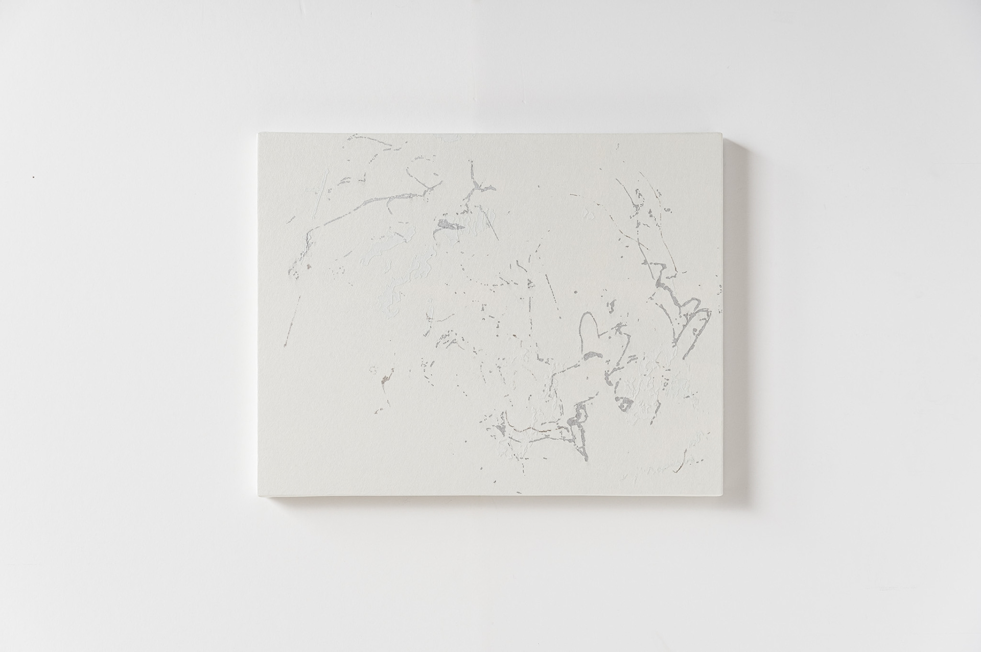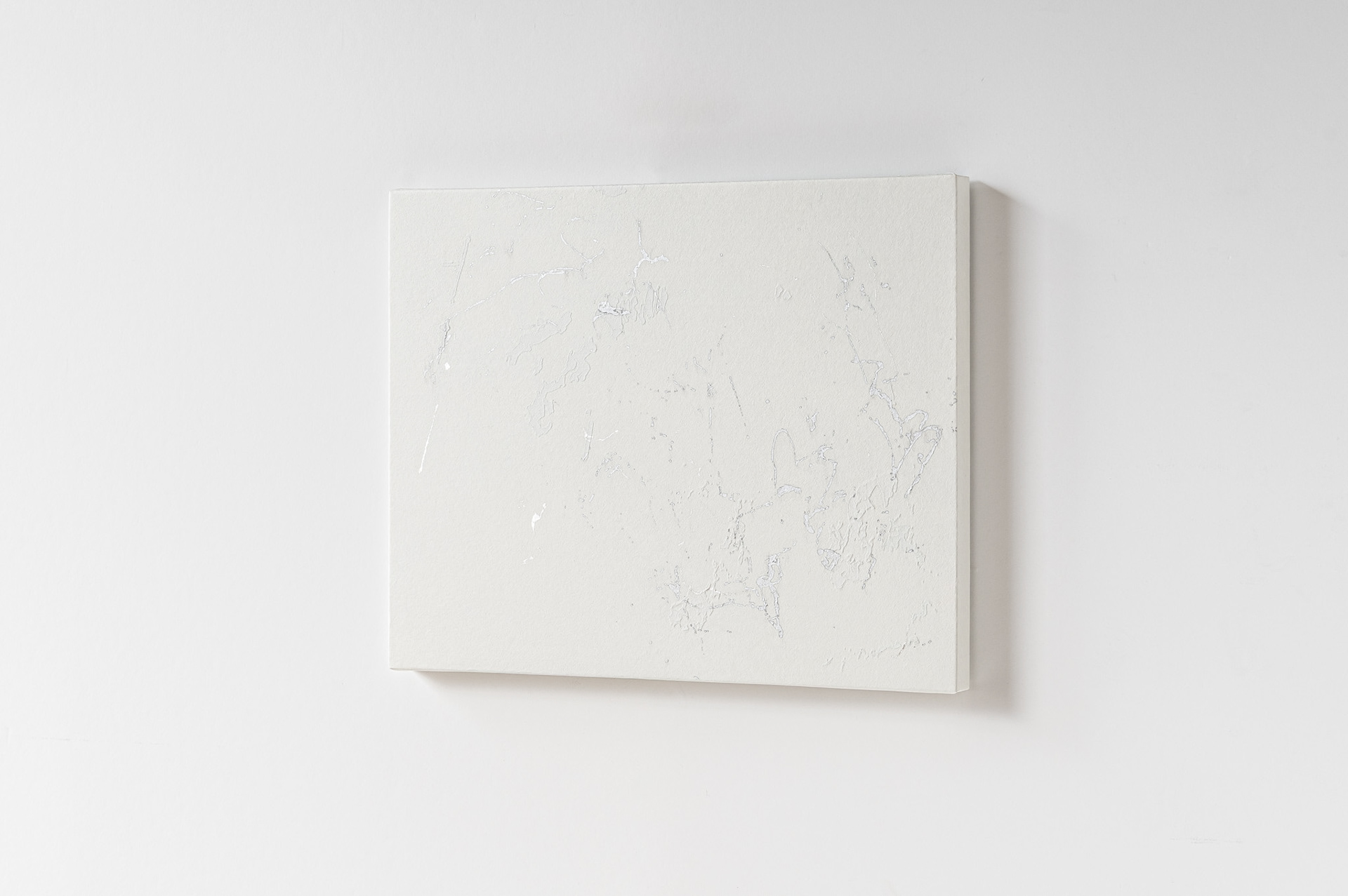 aluminum, silver, mineral pigments, glue, acrylic paint, Japanese paper on wooden panel