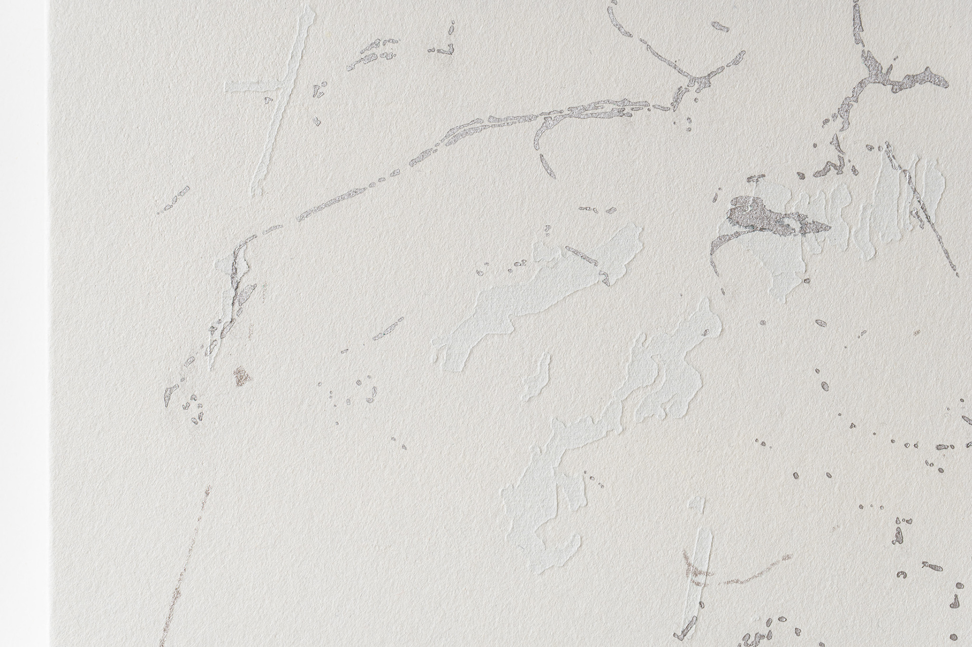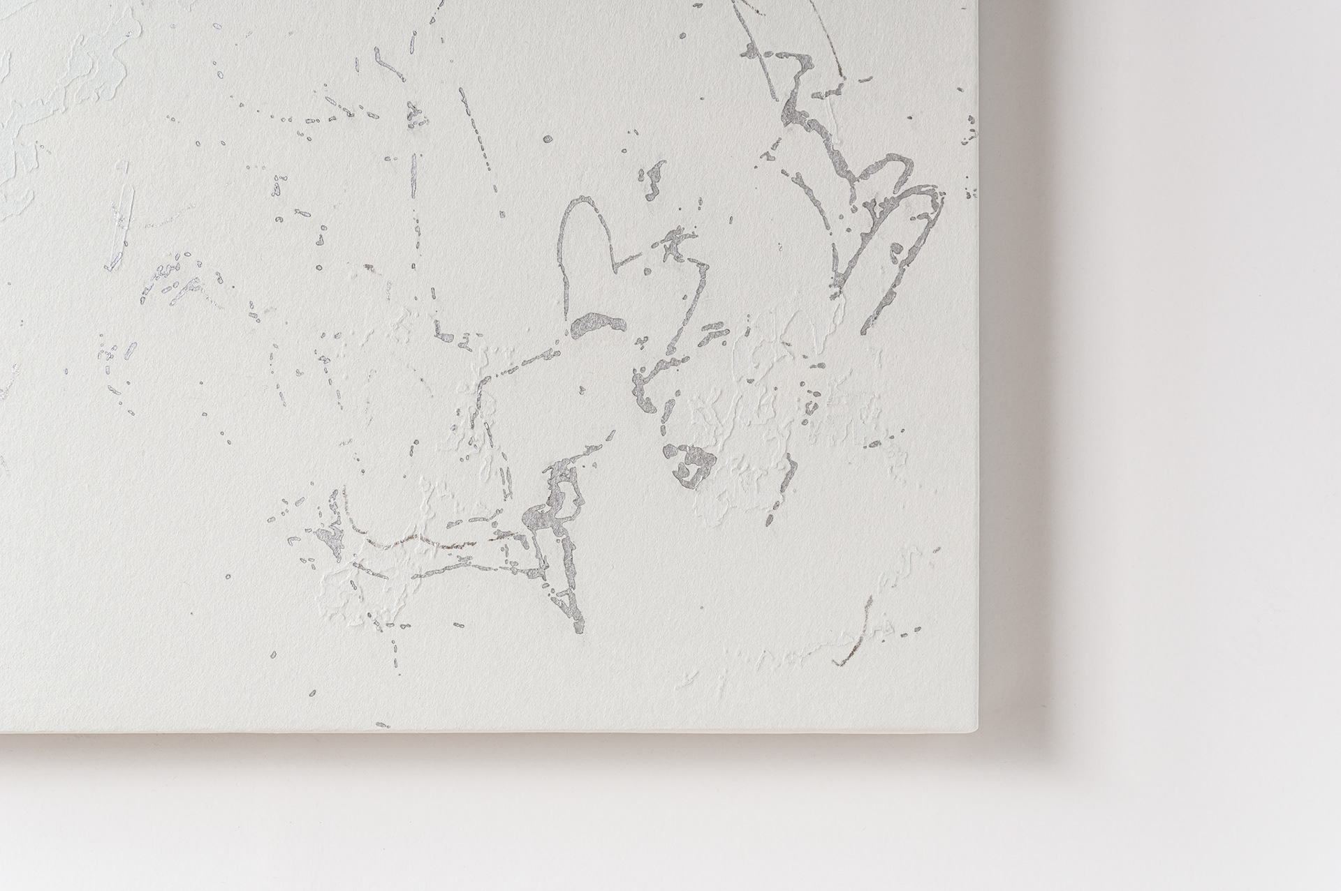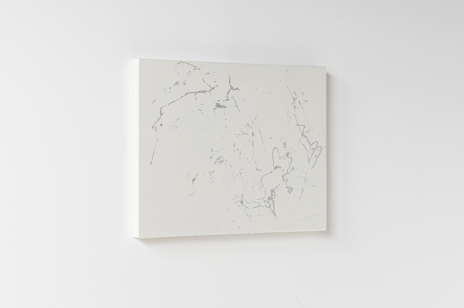 aluminum, silver, mineral pigments, glue, acrylic paint, Japanese paper on wooden panel
