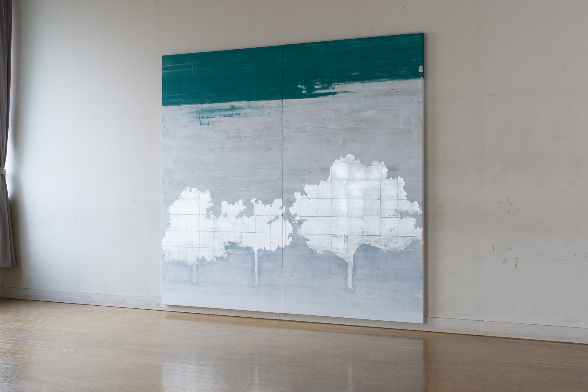 1980s towns in Japan #7 205 cm x 227.3 cm 2020 mineral pigment, silver leaf, gold, animal glue, japanese paper. 岩絵具、銀箔、金泥、膠、和紙