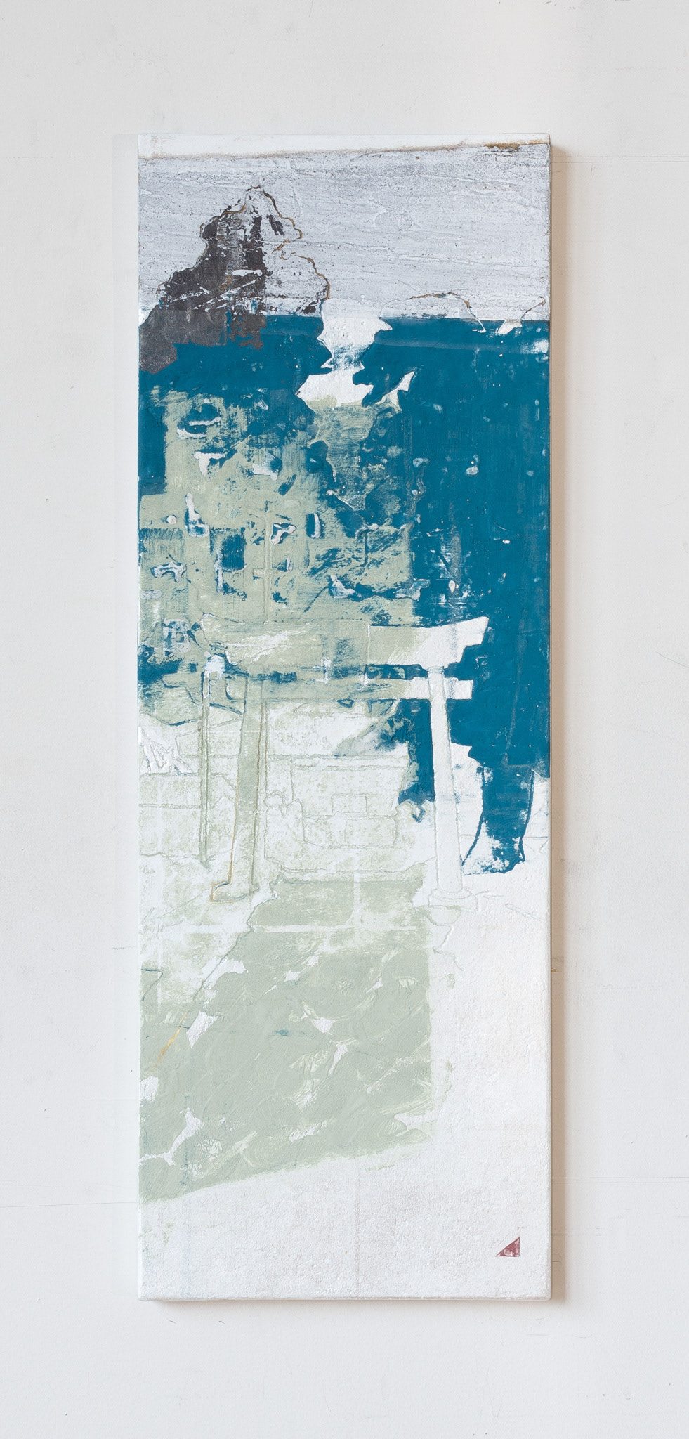 74.7×26.3cm 2018 pigment, silver leaf, gold, animal glue, japanese paper. 顔料、銀箔、膠、麻紙