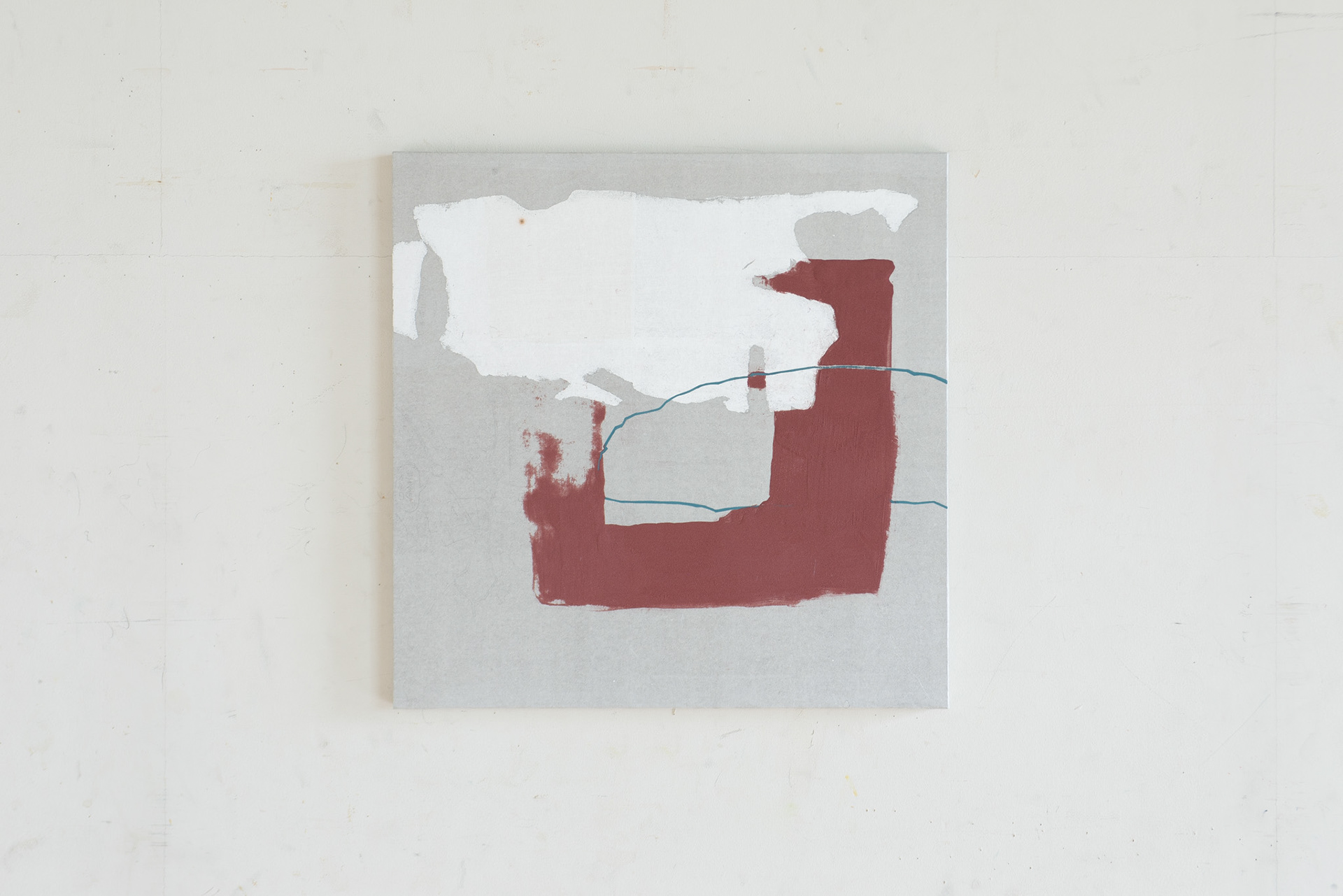 45 cm x 45 cm 2019 mineral pigment, acrylic paint, silver leaf, animal glue, japanese paper. 岩絵具、アクリル絵具、銀箔、膠、和紙
