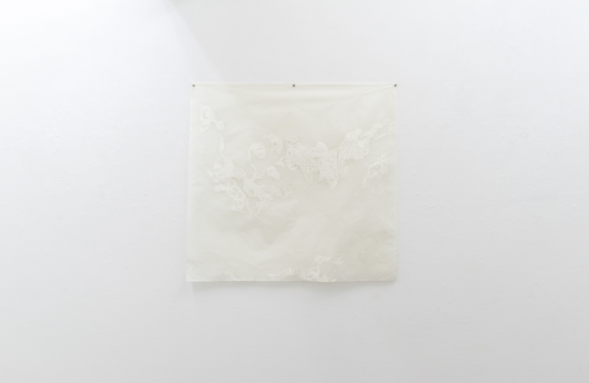 79.5 cm x 83.2 cm 2019 silver leaf, japanese paper. 銀箔、和紙